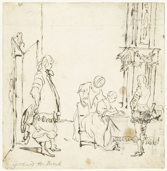 This drawing by Nicolaes Maes depicts Christ and the Woman of Samaria. The well, centrally placed, isn't just a source of water; it's a deep symbol, laden with cultural weight across time. Consider how wells have been depicted from antiquity to the Renaissance, often marking places of gathering and knowledge. Here, the well is not just a physical space but also a metaphorical one, echoing in the subconscious as a place of exchange, both material and spiritual. Like the classical figures at fountains, it’s about access to life and truth. The woman's gesture towards Christ—a subtle yet profound invitation—reminds us of similar gestures in classical depictions of dialogue and revelation. This recurs through art history, each iteration layered with the cultural memory of its predecessors, from classical philosophers to biblical encounters. It’s a cycle—a reminder that these symbols evolve, yet their essence persists, engaging us on a deeply rooted, psychological level.