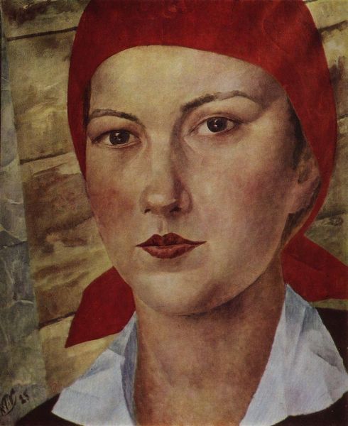 Kuzma Petrov-Vodkin painted *The girl in the garden* using oil on canvas. The way Petrov-Vodkin applies paint is key to understanding the work. You can see how he has built up the image through layers and layers, letting the brushstrokes remain visible. He’s not trying to hide the evidence of his labor; instead, he wants you to appreciate the hours of meticulous work that went into the painting. The rough, textured surfaces and varied colors add depth, while the carefully blended areas give it a sense of volume and form. We can see the artist's choices not just as aesthetic decisions but as reflections of the wider society in which Petrov-Vodkin lived. He’s part of a generation of artists trying to create a new visual language that speaks to the experience of working people. Looking closely at the materials, the making, and the context gives us a much richer understanding of the piece. It challenges those traditional boundaries, revealing the social and cultural significance embedded in the art.
