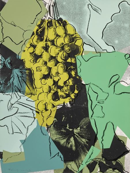 Curator: Njideka Akunyili Crosby's "Cassava Garden," created in 2015, is a captivating mixed media work. It strikes me immediately as a kind of vibrant, yet slightly unsettling Eden. Editor: Unsettling, yes, but perhaps purposefully so. Note the artist's strategic use of layering; it disrupts any conventional reading of depth. The flatness, amplified by the interplay of patterns, rejects any sense of spatial coherence we might expect from the title. Curator: Indeed. The cassava plant, heavily laden with symbolism in West African cultures, becomes a vehicle for exploring identity and memory here. Its leaves, seemingly collaged from newsprint and personal photographs, present a multi-faceted narrative. We see cultural references interwoven with hints of personal history. Editor: The layering is key to deciphering its symbolism. Cassava itself signifies sustenance, resilience. The incorporation of superimposed images and patterns related to Nigeria transform the canvas into a dense tapestry of meaning, pointing to the complexities of cross-cultural identity. I find myself looking for meaning through recognition. Curator: And let's not overlook the formal structure itself. See how the division of the background plane—one section pale yellow, the other overlaid with that repeating graphic of an idealized, historical female figure – creates tension. The contrast adds another layer to her commentary on the self in relation to society. It reminds one of textiles or even wallpaper designs. Editor: Exactly. The figure recalls images of progress and independence but filtered through nostalgia. It becomes part of the language, adding to the exploration of inherited iconography and aspirations. And against those images of hope and advancement is this dense foliage and shadow. Curator: In this tension, the personal and the historical converge; "Cassava Garden" stands as a powerful meditation on belonging and the construction of identity within a globalized world. It has a striking stillness. Editor: Yes, despite the dynamism of its patterns, a powerful statement on cultural memory emerges. It encourages the viewer to engage in decoding layers, making for an unexpectedly complex work.