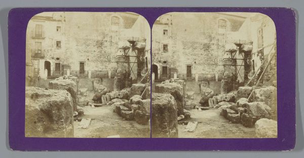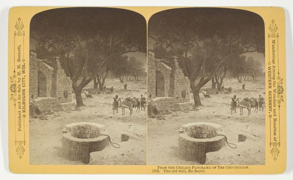 This stereograph depicts shepherds camped outside the Damascus Gate in Jerusalem, produced anonymously, likely for commercial distribution. Photographs like these were made through a fusion of optical engineering and chemistry. The collodion process, requiring careful mixing and coating of glass plates with light-sensitive chemicals, was essential to capturing the subtle gradations of light and shadow. The sepia tones speak to the materials used - silver salts reacting to light - and the labor involved in developing and printing these images. The stereograph format allowed viewers to experience a sense of depth and realism, making faraway places seem more accessible. But consider also the social context: the marketing of exotic scenes to a Western audience. What does it mean to package and sell the everyday life and labor of shepherds as a tourist commodity? Ultimately, this object urges us to reflect on the complex intersection of photography, commerce, and cultural representation.