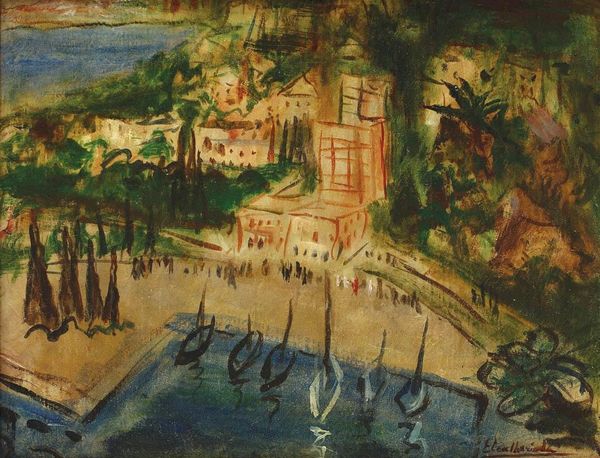 Francisc Sirato made this watercolour painting, entitled "Houses in Balcic," sometime during his career. The image presents a seemingly tranquil scene of village life, but it’s worth considering the cultural and political context that shaped Sirato’s artistic vision. Painted in the first half of the 20th century, this work reflects a broader interest among Romanian artists in depicting rural life and landscapes. This interest, often tied to nationalist sentiments, sought to define a distinct cultural identity rooted in the Romanian countryside. Balcic, with its unique blend of cultures and picturesque scenery, became a popular subject for artists seeking to capture the essence of Romanian identity. To truly understand this painting, we can explore archives of Romanian cultural history, studies of the Romanian art scene, and writings about the cultural politics of the interwar period. These resources can reveal the complex interplay between art, identity, and power in Sirato's Romania.