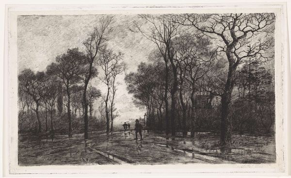 Elias Stark etched this image of three people on a road flanked by trees, a composition that carries more than meets the eye. The road, a symbol of life’s journey, is a motif as ancient as civilization itself, seen in countless forms across cultures. Think of the Roman roads, not merely routes for transport but arteries of empire, or the Silk Road, a conduit for ideas and cultural exchange. Here, the road is quiet, rural, yet it echoes those grander paths. Even the trees lining the road are more than simple foliage. They remind us of the tree of life, a symbol that appears from Norse mythology to the Garden of Eden, representing growth, connection, and the cycles of nature. Stark, perhaps unconsciously, taps into this deep well of collective memory. This seemingly simple etching thus resonates with profound, enduring symbols.