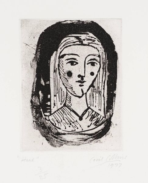 Jo Bezaan made this woodcut print, 'Woman with Headscarf,' at some point in the first half of the twentieth century. Bezaan's work is often associated with the Bergen School, a Dutch movement known for its expressionist style and social engagement. This image, with its stark black and white contrasts and simplified forms, speaks to the broader European engagement with woodcut techniques, particularly within German Expressionism. The headscarf situates the work within a particular cultural context, raising questions about identity and representation. Is it an image of empowerment, or does it perpetuate certain stereotypes? Without a date, it's hard to say if Bezaan is responding to a particular moment in Dutch social history. Further research into Bezaan's life, her artistic influences, and the reception of her work would offer more insight. Considering her affiliations with certain artistic movements, and the wider social and political context, this artwork can offer a window into the complex dynamics of identity and representation in the Netherlands.