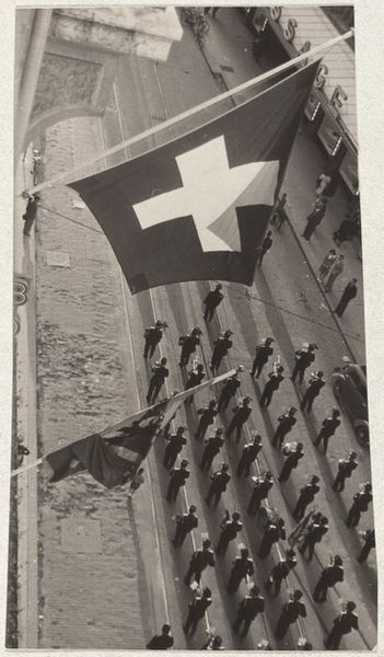 Robert Frank made this photograph, Zurich, using film and a camera, at some point in his life. It's a blurry image of a political rally, all grey and grainy, like a memory half-forgotten. The surface of the photograph feels rough, immediate. It's not about perfection; it’s about capturing a moment, a feeling. Look at the banner, the way the words are slightly smeared. It's like Frank is saying, "This is it, this is what it felt like to be there." The light flickers across the image, catching the edges of the flags, but leaving the faces in shadow. Think about the flags, how they loom over the crowd. They're not crisp and clean, they're heavy, burdened by the weight of their symbolism. It reminds me a bit of Walker Evans, that same honesty, that refusal to pretty things up. It's a document, but it's also a feeling, a mood, a question. What does it mean to be part of something bigger than yourself?