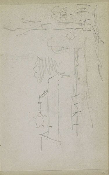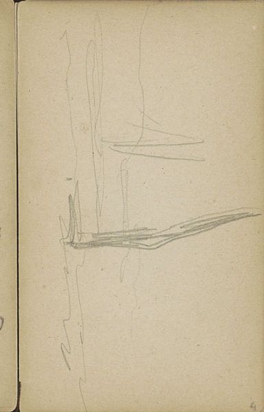 This is a pencil sketch of a street scene in Amsterdam with carriages, made by George Hendrik Breitner sometime in his life. It's all about the bare bones here, a quick capture of a moment. The marks are so light and airy, like whispers on the page, with a sense of immediacy and directness in the way Breitner has used the pencil. I love the way he’s just scratched in the basic shapes. You can see the underlying paper with its lines, still visible through the sketch. Look at that little scribble up on the right, does that say houses? There's so much left unsaid, allowing our own imaginations to fill in the gaps. For me it echoes the work of Manet, another painter who understood the power of suggestion. Ultimately, it's about not pinning things down too tightly. It’s an invitation, not a declaration.