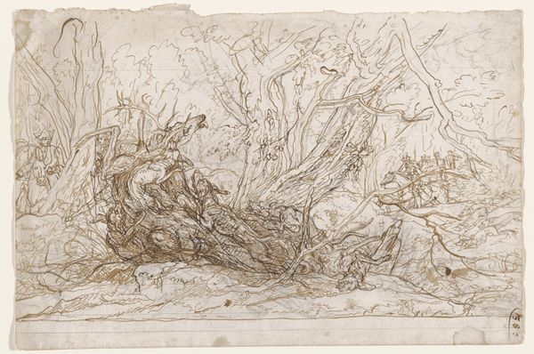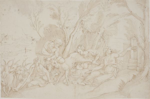 Gilles Demarteau created this print, "Barking Dog Chasing Ducks from Nest," using the crayon manner, a printmaking technique that imitated the appearance of chalk or crayon drawings. This image, likely made in France, captures a moment of natural conflict. A dog startles two ducks who are protecting their nest. The scene, set in a marshy landscape, reflects an interest in the natural world, but its creation and distribution through prints speaks to the cultural and economic conditions of its time. Demarteau's print was part of a larger market for decorative images, made accessible to a wider audience through printmaking. The rise of print culture in the 18th century democratized art, moving away from exclusive patronage and towards a broader consumption model. To fully understand this image, one might delve into the history of printmaking, exploring the social role of images and consulting archival sources to determine the audience for and reception of prints like these.
