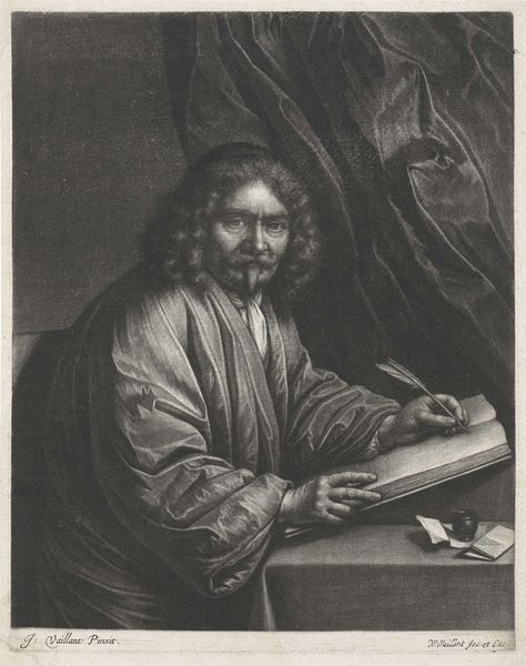 This small monochromatic print at the Rijksmuseum depicts a boy absorbed in reading. The composition is dominated by the play of light and shadow, a technique that lends the scene a contemplative mood. The boy is positioned to the right of the frame, his figure softly modeled. The texture of his hair and clothing contrasts with the smoother surfaces of the books and table before him. This arrangement creates a visual rhythm, guiding the eye from the illuminated page to the shadowed background. The artist, though anonymous, uses these formal elements to explore themes of knowledge and introspection. Consider how the lack of vibrant color focuses our attention on the tonal variations and intricate details. This forces us to engage with the act of reading not just as a narrative subject, but as a structured interplay of form and light. The image is not merely a representation, but an invitation to reflect on the deeper structures of seeing and understanding.