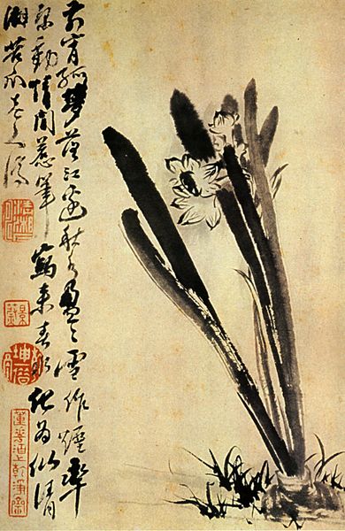Shitao’s "Bamboo Shoots" utilizes ink on paper to capture a scene of bamboo shoots emerging from the earth. The stark contrast of black ink against the paper creates a visual tension, drawing the eye to the interplay between the solid forms of the shoots and the delicate, almost ethereal leaves. The composition is structured around dynamic lines and forms. The shoots rise vertically, punctuated by the calligraphy, creating a dialogue between the organic and the textual. The artist uses ink washes to suggest depth and texture, giving the work a palpable sense of space. Shitao destabilizes traditional notions of representation by emphasizing the materiality of the ink and the expressive potential of the brushstroke. The formal qualities of the work—the stark contrasts, the interplay of line and form—reflect a broader philosophical interest in the relationship between nature and representation, inviting us to contemplate the very act of seeing.