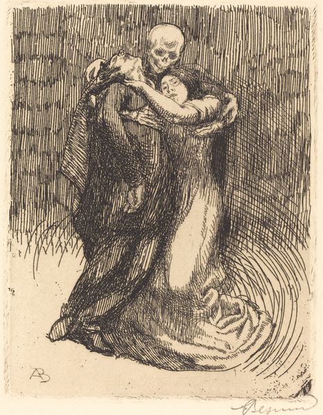 Barbara Elisabeth van Houten made this etching, Two Girls in Bridal Dress, with ink on paper. The lines are so delicate, like whispers on the surface. See how van Houten uses hatching to build up the forms, letting the white of the paper shine through? It’s a process of revealing, not just depicting. Up close, you can almost feel the scratch of the needle on the plate. The texture is so immediate, so tactile. Look at the way she renders the dresses, with these gossamer lines that give them a sense of volume, yet also fade into the background. It’s like she’s capturing a fleeting moment, a memory half-formed. Then consider the child's face, so direct, so solemn and solid. It’s a contrast that keeps you looking, wondering. This reminds me of Paula Modersohn-Becker, not in style, but in the way she could find such tenderness and vulnerability in the everyday. Art is a conversation, right? And Van Houten speaks so softly, yet with such conviction.