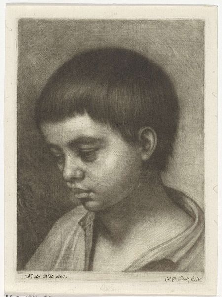 Wallerant Vaillant created this mezzotint of a child's bust in the Dutch Republic during the 17th century. The print depicts an infant-like figure that has been sculpted as a marble bust. The child is set upon a plinth and rendered in a style reminiscent of classical sculpture. During this period in the Netherlands, there was a flourishing art market fueled by a wealthy merchant class, with portraiture being a popular genre, reflecting a culture deeply invested in representing social status. Institutions such as the Guilds played a role in controlling artistic production, but artists like Vaillant were pushing the boundaries of printmaking. This image creates meaning through classical references, suggesting an elevated status for the sitter. Art historians can explore period archives and social histories to uncover the identities of Vaillant's sitters and the meanings behind their representation. Ultimately, this work shows art's dependence on cultural context.
