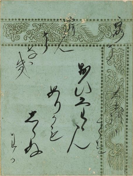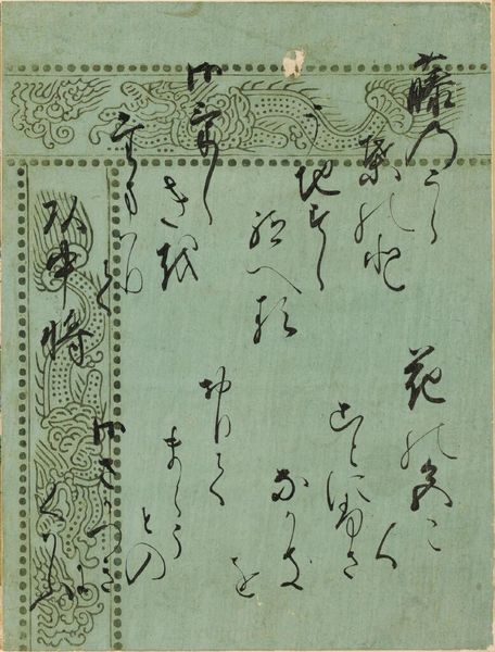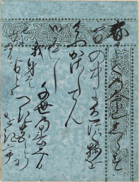 Editor: This is "Suma, Calligraphic Excerpt from Chapter 12 of the Tale of Genji" by Son'Å JugÅ, held at the Harvard Art Museums. The abstract shapes suggest letters, but I find it difficult to see words. What cultural context am I missing? Curator: This work highlights the elevated status of calligraphy in Japanese society. The Tale of Genji was incredibly influential. How might the social standing of the text affect its reception? Editor: It suggests calligraphy's value was linked to the text's prestige and broad cultural recognition, not just pure aesthetics? Curator: Precisely. The artistic merit of calligraphy was inextricably tied to the literary and social importance of the work it represented. What does that say about the artist's role? Editor: So, the artist enhances the prestige through skillful rendering rather than independent artistic expression? Interesting. Curator: Yes, and consider how the display of this excerpt in museums today shapes our understanding of traditional art forms. Editor: Thanks. That makes me think differently about the artwork's purpose and public perception.
