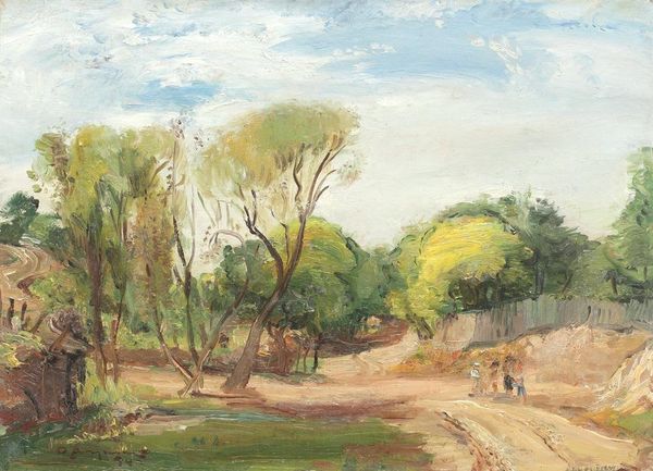 Pierre-Auguste Renoir, a leading painter in the development of Impressionism, made this oil painting titled 'Landscape near Cagnes' during a time of significant cultural shifts in Europe. Renoir’s impressionistic style can be understood as a part of a broader societal move towards capturing fleeting moments and subjective experiences. This contrasted with the more rigid academic art traditions that came before it. Renoir, who often depicted women and domestic life, creates here an atypical landscape. The art critic, Clement Greenberg, described Renoir's Impressionism as reflecting the values of the upwardly mobile bourgeoisie, capturing their leisure and pursuit of pleasure. However, as we observe the piece, we may also notice an interest in the natural world, absent of any people, which reflects the increasing urbanization and industrialization of French society at the time. The piece evokes a dream-like quality, inviting viewers to contemplate their relationship with nature and how it shapes their identities and experiences.