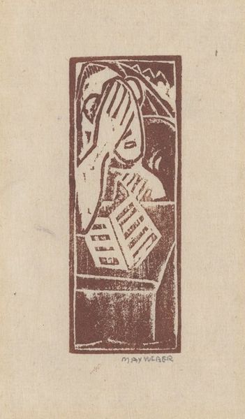 Max Weber made this print, *Figure*, using woodcut; a process that’s as old as the hills, really. It’s all about carving away at a block of wood, inking what’s left, and pressing it onto paper. Look at this image! The way Weber used the woodcut, makes me think of the relationship between positive and negative space – what you take away is just as important as what you leave behind. The texture is incredible, all those tiny marks from the wood grain give it a real tactile quality. See how the figure is built up from simple shapes, almost like a puzzle, and how the dark red ink creates a strong contrast against the white paper. I love the way Weber simplified the human form here, it reminds me a little of Picasso's cubist portraits, but with a more folksy, handmade feel. And just like with Picasso, it's less about representation than about building something new from pieces.