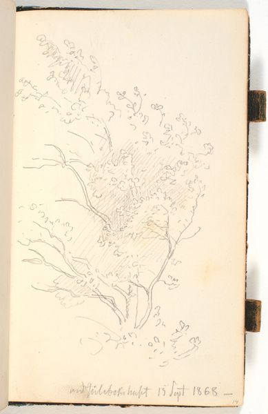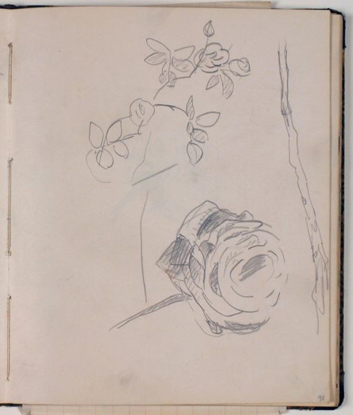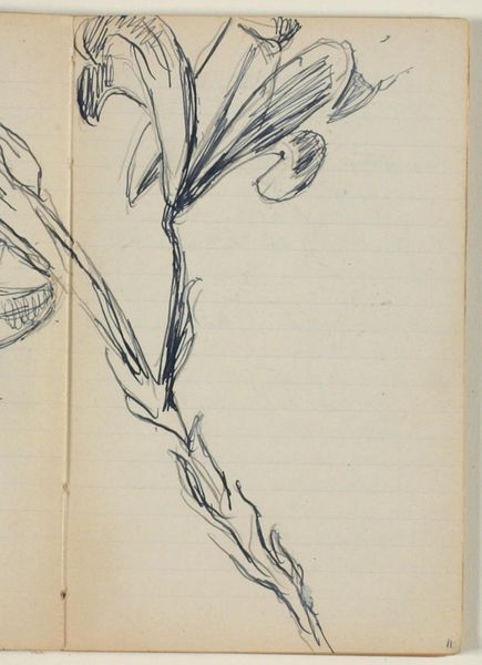 Curator: We are looking at "Plantestudie" a pencil drawing executed by Niels Larsen Stevns, between 1930 and 1936, held here at the SMK. Editor: The immediate impression is one of fragility. A single, slender stem gives rise to an almost chaotic burst of foliage, sketched with such lightness it feels ephemeral. Curator: Indeed, but note how the seemingly simple subject speaks to Stevns’ larger artistic project. He returned again and again to studies of nature. Considering the social and economic context of the interwar years in Denmark, this intense focus on the natural world becomes almost a radical act. Escaping the noise of a quickly modernizing world by representing simpler things. Editor: Perhaps. Though the "noise" to which you refer is far removed from the precision and elegance I observe in the overall composition. The contrast of the thick, vertical line with the delicately looping upper region gives the drawing its underlying energy. Curator: That contrast to me reflects tension between the artist and his subject matter, questioning, if he's portraying nature as comforting and beautiful, or just portraying it. Was he perhaps looking to establish a new, truly Danish approach to art outside established notions? Editor: While you focus on external and societal questions, I’m drawn back to the internal structures. Look at the way the leaves and petals are composed: almost geometrical figures held in contrast by a dynamic composition. I notice semiotic implications too. Is it that geometric rigidity you’re questioning? Curator: Potentially. As such a study I can consider it from a lens outside just aesthetics, though I am sure we can appreciate both the geometry, and what else it might signify. Thank you. Editor: My pleasure, though I think it is important to consider that the value isn't always about symbolic tension. I've appreciated observing this work today.