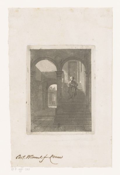 Jean-Baptiste Arnout created this lithograph of Franciscus van Paola in the ruins of a chapel sometime in the 19th century. Lithography, unlike traditional printmaking techniques like etching or engraving, relies on the chemical repulsion between oil and water. A design is drawn on a smooth stone or metal plate with a greasy crayon, then the surface is treated to make the image receptive to ink and the non-image areas receptive to water. When the plate is inked, the ink adheres only to the drawn design, which is then transferred to paper under pressure. In this print, the lithographic process allows for subtle gradations of tone and texture, mimicking the appearance of a delicate pencil drawing or wash. The artist could achieve a remarkable level of detail and atmospheric effect, from the rough texture of the stone walls to the soft light filtering through the ruined chapel, thereby demonstrating the versatility of lithography as a medium for artistic expression and reproduction.