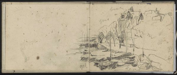 Willem Cornelis Rip made this sketch of a landscape with a drawbridge using graphite on paper. Rip, living in a rapidly changing Netherlands, seems to capture a moment of rural calm. Consider how the sketch, though simple, evokes a sense of place and perhaps nostalgia. The rough lines and unfinished details give us insight into the artist’s direct experience. The drawbridge, a symbol of connection and transition, also hints at the social and economic changes happening as the country became more industrialised. What feelings do you have when looking at the artwork? Does it evoke an emotional response, reminding you of your own experiences? Despite its simplicity, the artwork connects us to the cultural shifts of Rip's time and the timeless human experience of witnessing change.