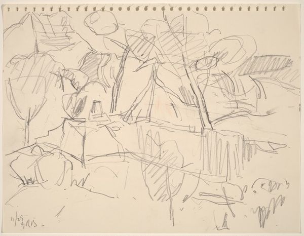 Editor: This is Isaac Israels' "Dancing Women with Spectators," probably from between 1875 and 1934, here at the Rijksmuseum. It’s a drawing – pencil and ink I think? – and has a real sketchy, fleeting feel to it. It seems like Israels was trying to capture a moment rather than create a finished piece. What do you make of it? Curator: This piece offers a window into the world of entertainment and leisure that was becoming increasingly important in urban life. Israels, as an Impressionist, was fascinated by modern life, and that included the theatre and dance halls. But it’s not just the scene itself, it’s the *process* of representation that's significant. Editor: How so? Curator: Look at the looseness of the lines, the lack of detail. This suggests that Israels wasn't just interested in depicting dancing women; he was exploring how to capture movement, light, and atmosphere. Also the role of the viewer. Editor: A sketchbook. That's very telling, isn't it? A more informal kind of painting or sketch, to explore a scene without pretense, in the street or cafe. Curator: Exactly. Sketchbooks show this artistic exploration taking place, away from the formal pressures of studio and market. Consider this alongside other depictions of performance at the time - Degas’s ballet dancers, for instance - how does Israels's approach differ? Where do you imagine he made this study? And what's he telling us? It really shows how different artists had vastly different social environments at the time, affecting their perception and imagery of the period. Editor: That's really fascinating. I was so focused on the “unfinished” quality that I missed the potential commentary on art itself. Curator: Precisely! These lines can take you anywhere and let you reconsider that historical, geographical space. I am forever learning in art history by asking these kind of questions. Editor: Thank you, it was illuminating. I’ll be viewing other Impressionists through a new perspective.