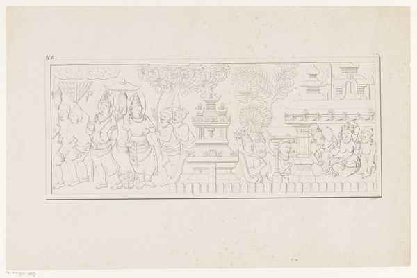 This anonymous print portrays General d'Alton and was crafted using etching techniques, presenting us with a narrative scene dominated by linear forms and contrasting values. The composition unfolds in a series of sharply defined vignettes. The stark contrast between the foreground and background creates a sense of depth, while the repetition of forms—barrels, soldiers, and architectural elements—establishes a visual rhythm. This rhythm however is uneasy, perhaps unsettlingly alluding to the repetitious and brutal nature of military operations. The artist uses line and form to articulate a critical perspective on authority and power. The arrangement of elements within the picture plane suggests a semiotic system at play; where each component acts as a signifier. The barrel could symbolize exploitation, the soldiers representing oppressive force, and the landscape itself, a territory under duress. This print challenges the heroic narratives of military leaders. It invites us to reconsider the values and structures that underpin social order.