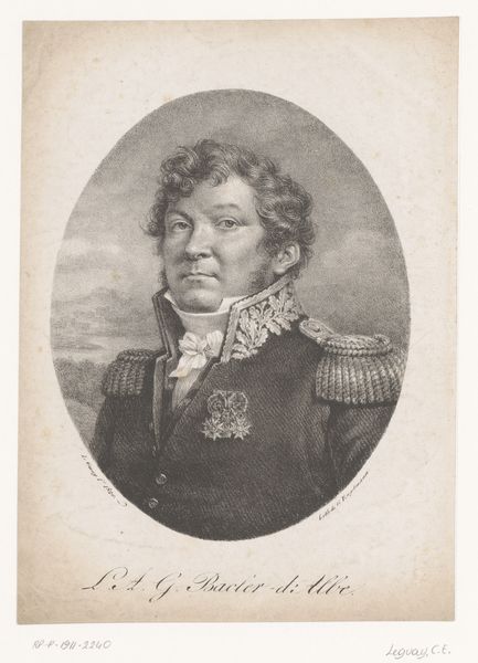 Theodoor Soeterik created this portrait of an unknown man with a technique that combines etching and lithography, a method that gained popularity in the 19th century for its ability to produce detailed and reproducible images. The sitter, adorned in military regalia, presents a figure of authority, embodying the ideals of duty and honor so valued in the period following the Napoleonic Wars. The medals and the uniform are not merely decorative; they speak to a life of service, reflecting the social structures of the time, where military achievement was a path to status and recognition. What does it mean to be unknown? To be a man of rank and yet unnamed? Soeterik's print invites us to reflect on the narratives that constitute identity, and the complex relationship between representation, memory, and history.