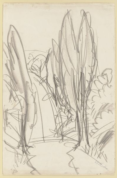 Claus Johansen made this pencil drawing, Parti ved Emdrup, which translates as 'Part of Emdrup', sometime in his life, but we're not sure when. The marks feel exploratory, like he's thinking through the forms, trying to get a sense of the place. It’s all about capturing the essence with these quick, searching lines. Look at the way he builds up the trees with scribbled marks, and how the landscape is just suggested. It’s not about detail; it’s about feeling. The texture of the paper becomes part of the drawing. There's a lovely rhythm in the repetition of the forms, those rounded shapes of the trees against the horizon line. It reminds me a little of the early sketches of Van Gogh, where you can see him working out his ideas, almost like a visual diary entry. It shows art as a journey, not just a destination.