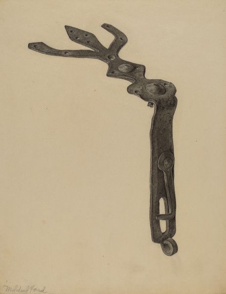 This is a drawing of an Andiron, made by Alexander Berth at an unknown date using graphite and watercolor on paper. It invites us to consider the role of decorative arts within the broader social history of art, a discipline long dominated by painting and sculpture. Berth, a master draftsman, elevates a functional object to the level of art, prompting questions about taste, class, and cultural values. Made in the United States, the andiron would have sat within a fireplace, an important feature of domestic life. Berth's interest in capturing its design reflects an appreciation for craftsmanship and the artistry embedded in everyday objects. By isolating it on the page, the artist asks us to re-evaluate its aesthetic qualities beyond its utilitarian purpose. To truly understand this work, one could delve into design history, exploring the cultural significance of metalwork and the relationship between art, industry, and the home. The history of decorative arts has often been ignored in favor of other more high-minded pursuits, but it is through works such as this that such traditions are challenged.