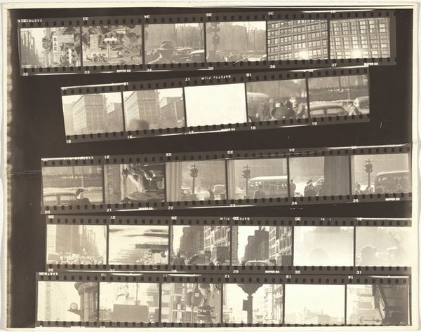 Robert Frank’s photographic print, Peru 2, presents us with a series of black and white film strips, a format that immediately directs our attention to sequencing and narrative. The grainy texture and stark contrast evoke a sense of rawness. The composition is segmented, and each frame offers a fragmented view of life in Peru, capturing landscapes and human activity. Frank's use of film strips challenges the conventional notion of the decisive moment. Instead, he presents photography as a continuous flow of images. Marked with X's on certain frames, he disrupts the conventional, signifying a rejection of the traditional standards of photographic perfection. His work compels us to consider the relationships between individual images and the larger narrative they construct. The seemingly random arrangement resists closure and destabilizes fixed meanings. Frank pushes us to engage with the open-ended nature of perception and representation.
