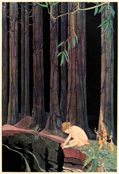Eleanor Fortescue-Brickdale's "Idylls of the King" presents a scene cast in a palette of rich greens, browns, and blues, where the weight of the narrative pulls us into a moment of sorrow. The composition is defined by the vertical thrust of the trees which frame a fallen knight and a grieving woman. Fortescue-Brickdale uses the forest setting to create a semiotic space, where nature reflects the inner turmoil of the figures. The trees are not mere backdrop, but structural elements that seem to bear down on the scene, mirroring the emotional burden of the woman. The knight's prone body forms a stark horizontal line, a visual counterpoint to the upright trees, highlighting the disruption of natural order. The texture of the foliage is rendered with enough detail to invite the eye, yet not so much as to distract from the central drama. Note how the artist plays with light and shadow, especially on the trees. This formal technique not only adds depth but also enhances the sense of drama and foreboding, inviting us to question the values and categories of heroism and loss. "Idylls of the King" invites ongoing interpretation, where aesthetic choices reflect deeper cultural and philosophical undercurrents.