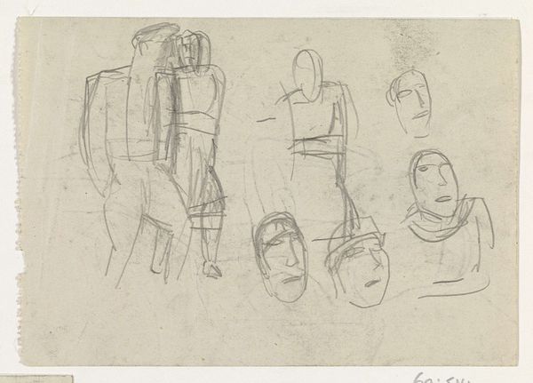 Here we have Leo Gestel’s sketch, made with black chalk, depicting a group of men, each distinguished by their hats. These are not merely head coverings; they are symbols of identity, status, and belonging. The hat, throughout history, has served as a potent marker of social role. Consider the Phrygian cap, a symbol of freedom in antiquity, or the mitre, denoting ecclesiastical authority. In Gestel's sketch, each hat subtly hints at the wearer's profession or social standing, echoing the collective memory of such distinctions. One might recall similar groupings in earlier Dutch masters, where attire meticulously conveyed social strata. Yet, here, the sketchiness blurs these lines, suggesting a modern unease with rigid categorization. The collective subconscious seems to be at play. The power of the image lies in its ability to evoke a sense of collective identity and perhaps even a shared anxiety about the individual's place within the group. This motif of men with hats reappears across centuries, each time carrying the weight of societal expectations, resurfacing in different garbs, and reflecting our ever-evolving understanding of ourselves.