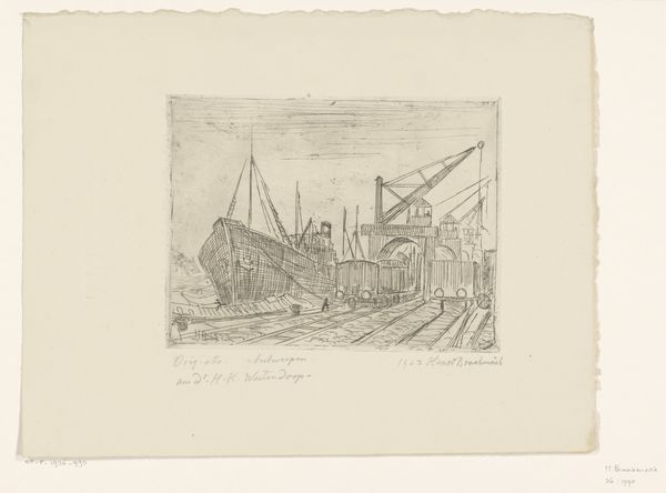 Othon Friesz made this drawing of the Kattendick harbor in Antwerp with ink on paper. There is a real freedom in the line, a spontaneous quality, which tells me Friesz was less concerned with capturing the exact likeness of the scene, and more interested in the pure, unadulterated act of drawing. There's a beautiful tension between the light and dark areas, like the murky water in the foreground against the distant sky, which gives the piece a kind of moody atmosphere. The marks are confident, almost brash, and you can practically feel the artist's hand moving across the page. Look closely, and you'll see the way he uses hatching and cross-hatching to build up tone and texture. It’s like a dance, a conversation between the artist, the ink, and the paper. I can see echoes of other artists like the German Expressionist, Ernst Ludwig Kirchner, who also used bold lines and simplified forms to convey emotion. Ultimately, it reminds us that art is not just about what we see, but how we see it.
