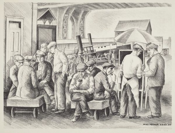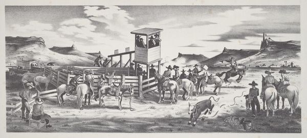 Ann Nooney made this lithograph, Goshen Fair, sometime in the mid-twentieth century, and what strikes me is the almost obsessive mark-making. Look at the way Nooney patiently builds up tones with these tiny, precise strokes, creating a world that feels both real and slightly dreamlike. It’s like she’s trying to capture every little detail, every nuance of light and shadow, in this bustling scene. I’m drawn to the sky in particular, with its wispy clouds rendered in delicate lines. You can almost feel the breeze, the vastness of the open air. Then there’s the contrast with the dense, solid forms of the people and tents below, all rendered with the same meticulous attention. And, consider the guy on the horse! I love how the artist builds up his plaid shirt with these tiny almost obsessive marks that feel very personal. It reminds me a bit of the early work of Philip Guston, before he went all-in on those cartoonish figures. Both artists share that love of process, that willingness to get lost in the act of making. Art becomes not about perfect representation, but about the joy of discovery, the endless possibilities of line and form.