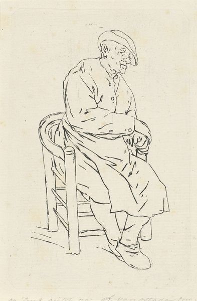 Taco Scheltema's pencil drawing depicts a man seated and absorbed in reading by a window. Scheltema, who lived through a tumultuous period marked by revolution and shifting social structures, captures a quiet moment of contemplation. The man's posture, with his legs casually crossed, suggests a certain level of comfort and privilege, reflecting the social norms of the late 18th and early 19th centuries. His attire signals a bourgeois identity, further situating him within a specific class context. Yet, there's also a sense of introspection, as if the act of reading offers an escape or a deeper understanding of the world. The window, a recurring motif in art history, serves as a metaphorical threshold between the interior world of the individual and the exterior world of society. What is he reading? What does he feel? The drawing invites us to reflect on our own moments of solitude. This work subtly hints at the complex relationship between individual experience and broader social forces.