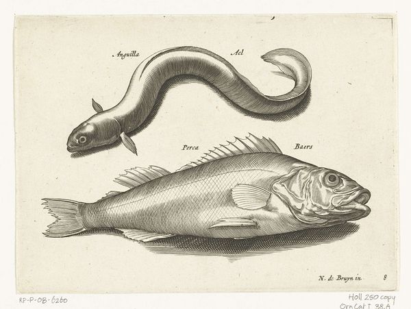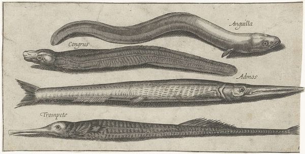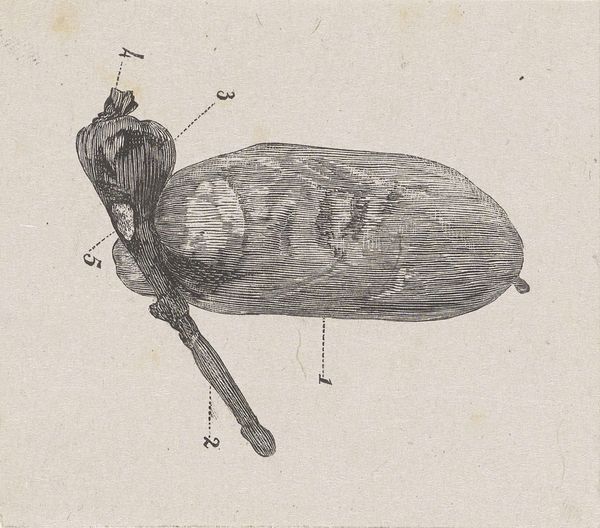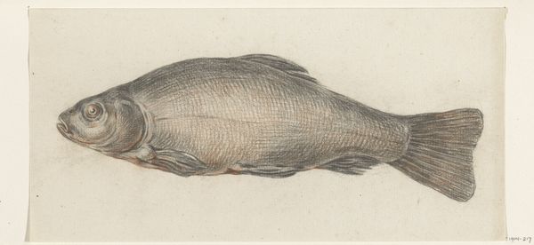 Editor: So, here we have Isaac Weissenbruch's "Zeewolf," probably from sometime between 1836 and 1912, a drawing done with ink and pencil on paper. It has such a stark, almost clinical feel to it, yet there’s something quite charming about the fish. What strikes you about this piece? Curator: Charming is the perfect word! You know, it reminds me of the scientific illustrations from old natural history books – a kind of detached observation mixed with the artist’s individual, slightly quirky, hand. Notice how meticulously he's rendered the scales, each little line given its due. And yet, that somewhat wonky eye! Editor: Yeah, the eye is really captivating. There are a lot of meticulously drawn aspects of it like you said, but it seems like he wasn't too serious with the illustration as a whole. Was Weissenbruch perhaps poking fun at this scientific style? Curator: It's a fascinating question. I think there's a playful quality there, perhaps. The ‘Zeewolf’ is an honest study, but it’s imbued with this feeling. Did you notice, it almost looks like the fish has a little smirk? Editor: I didn’t before, but now I do. Looking at all of the small quirks reminds me that illustrations don't always need to be hyper-accurate or super-serious to teach people something. It gives personality to the field! Curator: Exactly! Art has that power—to humanize and bring curiosity into even the most scientific endeavors. The "Zeewolf", in its own way, makes you wonder, doesn't it? It's just a little drawing, but it's more profound. Editor: It really does! It makes me excited to visit and observe more sketchbook works. Thank you so much for your input!