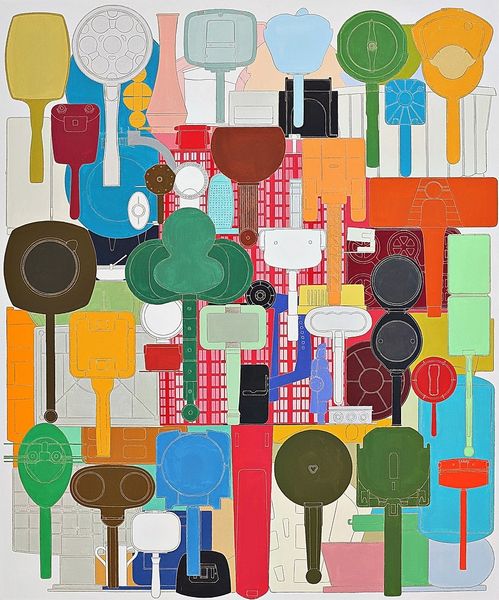 Alfio Giuffrida made this painting, Pencils Exp10, using flat blocks of colour to create a rather curious composition. The whole thing feels very process-oriented, like a puzzle or an exploded diagram. The colours are bold and separated, giving it a graphic quality. It's hard to tell exactly what kind of paint he’s using, but it's laid down in clean, flat areas. The texture is smooth, and the colours are opaque, there’s no real blending, just clear divisions. Look at how the red objects pop against the blue pencil. It's this push and pull that keeps your eye moving around the canvas. Each shape is distinct, yet related. It reminds me a little of Léger, especially the way he flattened forms and used colour to create spatial relationships. Ultimately, Giuffrida is interested in the ongoing conversation about art and the various ways we can play with form, colour and composition. And as with all good art, this piece opens up more questions than answers, and that's what makes it exciting.