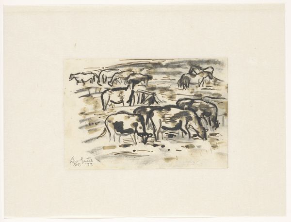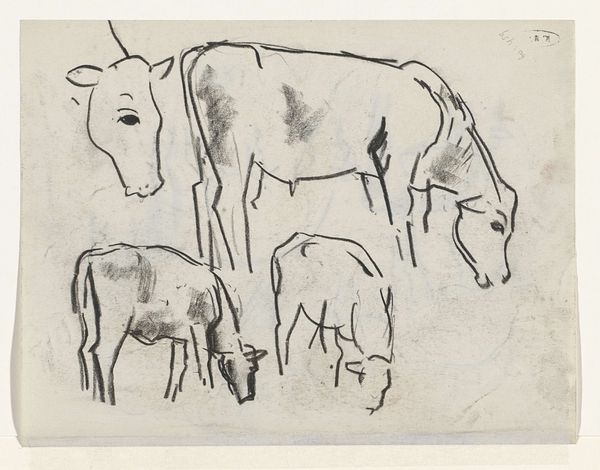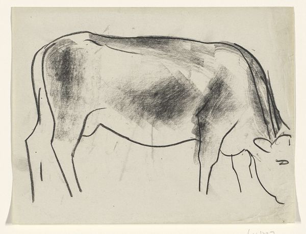 Leo Gestel sketched these four cows in a landscape using charcoal and crayon on paper. What strikes me is how Gestel embraces the immediacy of the medium. You can almost feel him capturing the essence of the cows in swift, confident strokes, it is a kind of direct translation of perception into form. Look at how the charcoal lines define the contours of the cows, creating a sense of volume with minimal effort. The crayon adds subtle color variations, a pale brown for their backs and a whisper of green and yellow for the grass. The texture of the paper peeks through, adding a tactile quality to the image. Notice the delicate touch of blue crayon in the top left, which suggests the sky and adds depth to the composition. It’s these moments of understated beauty that elevate the piece. Gestel's work reminds me a little of Marsden Hartley, especially in the way he uses a simplified visual language to express a deep connection to his subjects. Both artists show us that art isn’t about perfect representation, but about feeling and expressing the world around us.