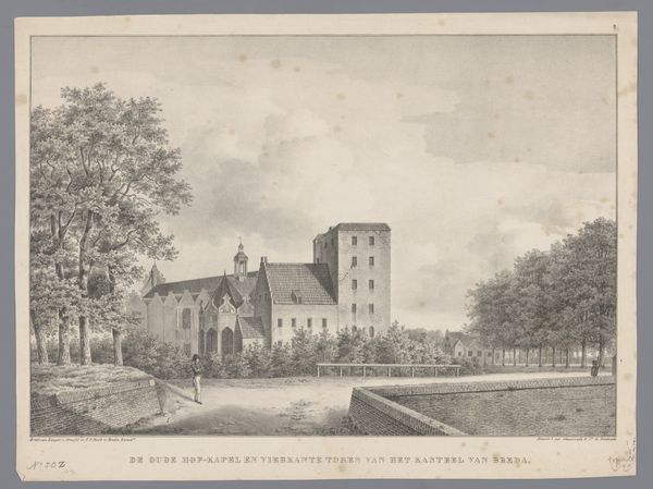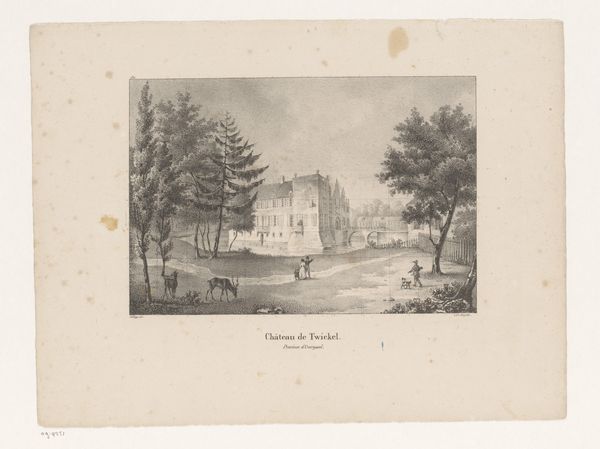 Curator: Ah, here's an intriguing one! This is a drawing from 1827-1829 entitled "Gezicht op kasteel Beverweerd bij Werkhoven" - that's "View of Beverweerd Castle near Werkhoven". Done in ink on paper, and by an anonymous hand, of course. Editor: It feels like stepping into a storybook illustration. There's a sense of stillness, a quiet dignity, almost melancholy, perhaps because it’s rendered in monochromatic shades. Curator: Precisely! Look how the artist used delicate lines to capture the reflection of the castle in the water, a rather realistic treatment. One can imagine folks boating in a similar way today. But, you know, I always wonder about the hands behind these anonymous pieces. Were they professionals? Amateurs? Did they imagine their art would survive the centuries? Editor: Considering the time period, such leisure was probably accessible to very few and usually meant stolen or forced labor to make such an experience happen, right? I'd be interested to investigate more the context of labour practices from the time. How might enslaved or working class peoples have perceived such imagery, or been erased by its making? Curator: A good point, always wise to recall that things might be picture perfect on the surface, but there is often a less-than-ideal foundation on which these scenes were constructed. Still, the formal execution... the artist carefully balances the architectural grandeur with the serenity of the landscape, offering a compelling composition of light and shadow, really capturing the essence of the period’s artistic sensibility, perhaps the vestiges of romanticism. Editor: Yes, but that very "essence" can conceal those uncomfortable historical realities. While some found solace or escape in picturesque scenes like this, others may have felt a sting of exclusion. I wonder, did art of this era also act as a form of visual propaganda, subtly reinforcing societal hierarchies? Curator: Propaganda, perhaps? That's an intriguing point. I hadn't thought of it that way. Anyway, it is compelling, whether you appreciate it for its compositional elements, the calm, still vibe it emits or what its depiction and possible propagation could symbolize. Editor: Absolutely. For me, it underscores the necessity of art historical examination that extends beyond the aesthetic to include critical analysis of its social and political implications.
