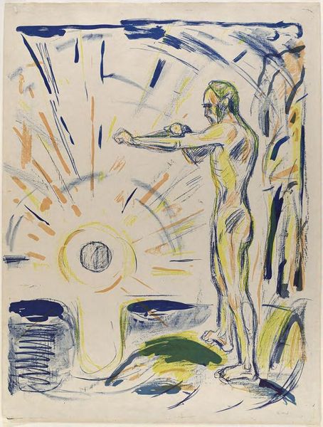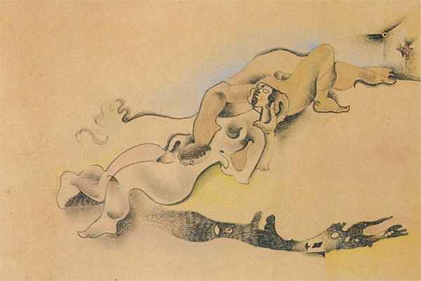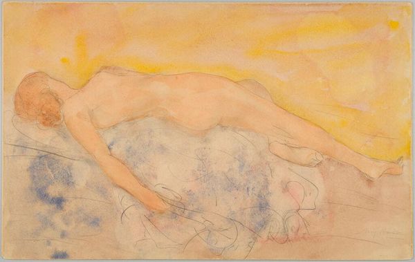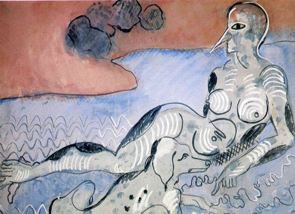 Odilon Redon painted *Naked Woman on a Car* with watercolor and pastel at the turn of the 20th century, a period marked by rapid industrialization and changing gender roles. Redon, working outside the dominant artistic movements of his time, often explored themes of dreams and the subconscious. Here, the image of a nude woman atop what appears to be a car challenges traditional representations of the female form. Instead of portraying her as a passive object, he places her in an active, almost daring position. It seems as if she is embarking on a journey into the unknown. Consider the historical context: automobiles were a new and exciting technology, often associated with wealth and progress. By placing the nude woman on this symbol of modernity, Redon evokes a sense of freedom. He is potentially questioning societal expectations of women. This artwork remains enigmatic, inviting us to consider the complex interplay between gender, technology, and the human psyche. What does it mean to be a body in motion, breaking free from the constraints of tradition?