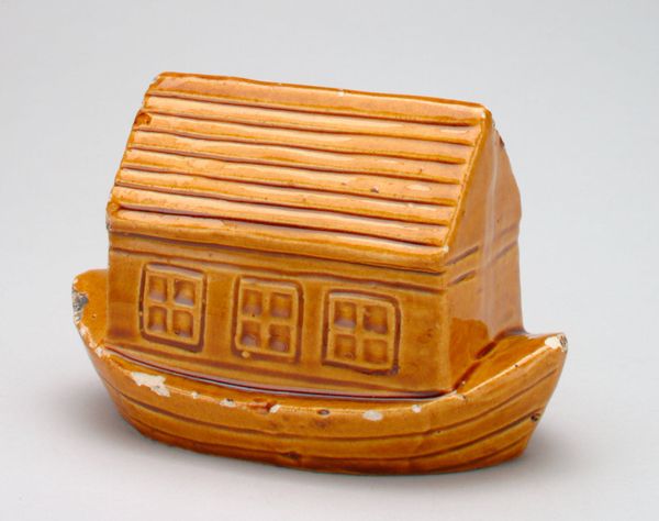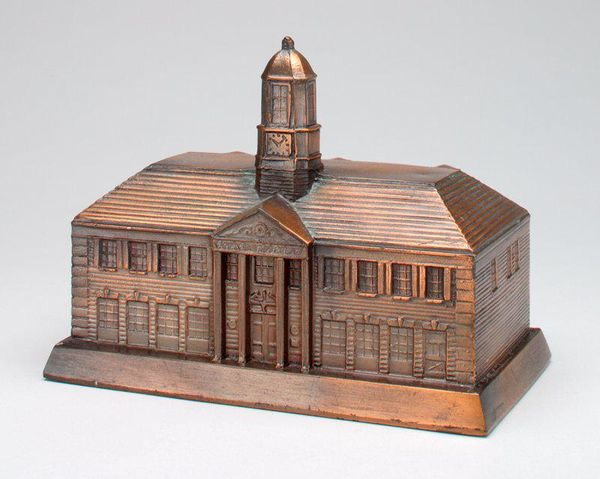 This "National Savings Bank (house)" still bank, of indeterminate date, was made by an anonymous maker. Everything about this piece speaks of process. Someone, somewhere, cut and assembled these pieces of wood, staining and varnishing them to create this little building. The palette is limited to warm browns, reds and oranges, but it's a surprisingly rich combination. Look at the way the different shades of brown create depth and shadow, how the vertical lines mimic the grain of the wood itself. The base of the bank is particularly interesting. It's made up of horizontal layers of light and dark wood, stacked like sedimentary rock, emphasizing the earthbound nature of this bank. Even the lettering, 'National Savings Bank,' is built into the architecture of the piece; a part of the design, as much as the windows or roof. It reminds me a bit of Haim Steinbach, his use of found objects to create meaning, but this piece is less about the objects themselves and more about the act of building, of creation. Art isn’t always about answers; sometimes it’s about the questions that are asked.