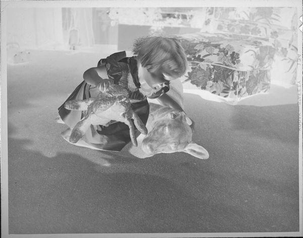 Untitled (young girl sitting on divan with doll and book)Â 1953