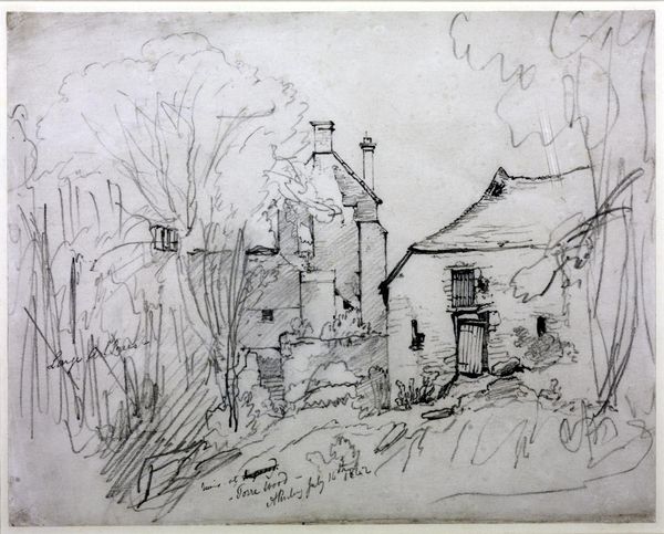 Editor: This is "Sawmill," a pencil drawing created around 1825 by Theodore Rousseau. There's something about its unassuming simplicity that draws me in, a focus on the industrial structure itself. What aspects of the drawing strike you? Curator: The pencil drawing is very interesting considering the Romantic era’s emphasis on nature and emotion. Rousseau is presenting us with the material reality of resource extraction. He gives the means of production its due, highlighting how human activity shapes our interaction with, even domination over, the natural world. What is created, and how? Editor: So you're saying that rather than just seeing a pretty landscape, Rousseau wants us to consider the sawmill as a place of work and modification of natural resources. Does the medium - pencil - influence that perspective in any way? Curator: Precisely! Pencil, often associated with sketching or preliminary work, signals that the making and labour are at play in the creative process. Consider, also, where the raw material originates. The trees are gone, transformed by tools and labor into planks that fueled 19th century industrialisation. It's almost a snapshot of pre-industrial work being impacted by machinery. Editor: I see! So it's not just about the finished product, but also about what went into creating it – the labour and the resources, right? And how even a simple drawing with a humble material like pencil can spark questions about wider systems of work. Curator: Absolutely. Now consider how consumer demands then contribute to such spaces now... perhaps we have come full circle to question what the artist observed in the material, its context and origins.