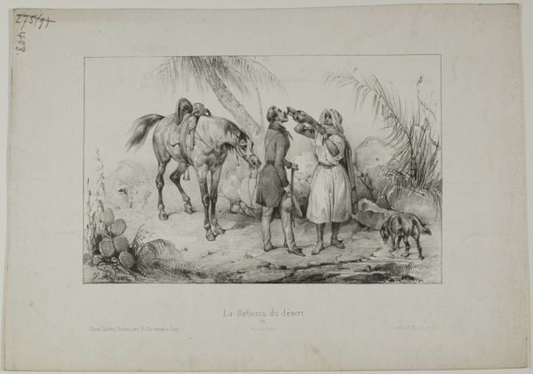 Curator: Let's consider this etching currently displayed in the Rijksmuseum. Created by Adrien Aubry in 1872, it's entitled "Group of Armed Men with a Severed Head on a Pike." Editor: Immediately, the stark contrast catches my eye – the brutal procession practically vibrating against the stillness of the seated woman. The mood is overwhelmingly grim. Curator: Precisely. Aubry's expert handling of the etching technique allows for this stark interplay of light and shadow, highlighting the horror of the impaled head. Notice how the procession is moving right-to-left across the plane, as opposed to the static female figure who grounds the left plane of the composition. Editor: And I'm struck by the very means of production here. The use of etching itself – a laborious, chemical process involving acid and metal – adds another layer of meaning to the work. The starkness feels inherent to the method. Is this realism merely depicted, or born of the process? How can this act of documentation of brutal violence also become art? The physical effort and materials involved in its making, in contrast to the violent immediacy represented within the image... Curator: An astute observation! And think about what materials Aubry is etching into; the metal plates require immense effort and skill to work on. This etching participates in a historical tradition of prints functioning as powerful conveyors of social narratives. What Aubry chooses to include or omit within this limited format creates symbolic weight. The materiality creates the capacity to convey ideas on resistance or violence. Editor: The implied labor involved further complicates the piece, and asks me to question if my very consumption is implicitly violent or not. It pushes one to ponder if the "art world" and its history itself is steeped in exploitation. The social and labor conditions of this piece implicates how we should interpret its social statement today. Curator: The way it frames and formalizes its violent themes elevates a raw story. The organization creates not just information, but an image. We leave feeling deeply uncomfortable, but with an experience borne of artistic craft. Editor: Leaving us to consider both the historical weight of the scene and the ongoing repercussions of its representation.