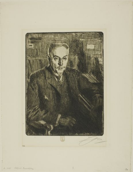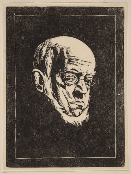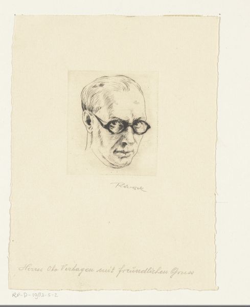 Curator: Here we have Lodewijk Schelfhout’s 1918 portrait of Johan Verster, rendered in graphite. Editor: Stark. Austere, almost. The high contrast and narrow tonal range immediately set a rather somber mood, don't you think? Curator: Indeed. It's important to remember that this piece was created during the final year of World War I. The subject's solemnity may reflect the widespread mood of the time. Editor: True. The formal composition, with the profile rigidly placed against a dark backdrop, amplifies that feeling. I find the cross-hatching gives a strange dynamism to an otherwise static image. There is almost a pulsating dark energy within the small confines of the rectangle. Curator: I'd agree, that sense of dynamism is partly due to Schelfhout’s adept manipulation of the graphite medium itself. You've noticed the varied pressure and directional strokes create texture and volume within a limited palette. And given that many artists during that period tried to capture everyday subjects within a modernistic frame, the cross-hatching could also speak to capturing some of the new energies within urban centers at the time. Editor: It makes me wonder about the role of portraiture during wartime. Beyond commemoration, how did such images function as a means of social commentary or resistance? Curator: It’s worth thinking about. Realism as an aesthetic strategy arguably gained more potency against the backdrop of political turbulence. What looks like an unsentimental portrait of a bespectacled man becomes imbued with deeper implications. It could be said, the politics of looking have rarely been so charged. Editor: It's powerful how Schelfhout uses the material qualities of graphite to convey such psychological weight. It certainly encourages me to reassess my own perception of what a portrait from this era is 'supposed' to convey. Curator: Absolutely. It’s these intricate details, and the stories surrounding them, that makes studying art so rewarding. Editor: Agreed. Time well spent observing and contextualizing.
