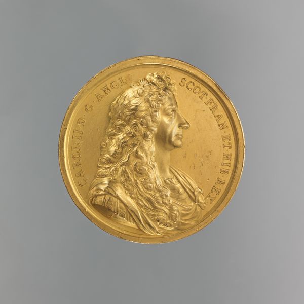Curator: Right now we're looking at "Portret van Willem V," a sculpture from 1757 crafted by Johannes Christiaan Konsé. It’s a rococo-style relief carving. Editor: Wow, the pearlescent shimmer is captivating. It gives the subject this ethereal, almost dreamlike quality, as if we’re seeing a vision rather than a concrete individual. Curator: Precisely. Konsé rendered the portrait in mother-of-pearl, which elevates the status of Willem V as it creates a glowing effect that’s meant to evoke majesty. Editor: It is interesting. Considering this choice of material...Do you think the translucent sheen hints at the complexities beneath the surface of power? We get the official portrait, sure, but the shell lends an interpretive softness and a hint of inscrutability. Curator: Definitely. The Rococo style, with its emphasis on ornamentation and lightness, served specific functions during the mid-18th century. It wasn't just about beauty, it was a tool for expressing social status and political ideology. Editor: True. Beyond pure visual appeal, how did such portraits help shape the perception and solidify the power of figures like Willem V within society? Curator: By being displayed in specific locations like homes and official buildings, this kind of piece contributed to cultivating Willem V's public image. Rococo allowed for idealization and an emotional engagement which aided in reinforcing his authority. The selection of mother-of-pearl, in this context, goes far beyond mere adornment; it becomes a potent signifier of status and virtue. Editor: You’ve given me some new ideas on it. At first, it struck me as simply elegant, but I'm getting how calculated every shimmer and curve is to promote an image. Curator: Right? Think of it as part of a larger theater of power. A shell may be delicate, but its symbolism can be quite sturdy. Editor: So it's shimmering subtly, echoing and reflecting its culture and politics! Thanks.