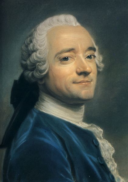 Curator: Editor: We're looking at Maurice Quentin de La Tour's 1747 portrait of Jean-Joseph Cassanea de Mondonville. It strikes me how… approachable it feels, despite being a formal portrait. What’s your perspective? Curator: Considering its social context, let’s think about pastel as a medium. Pastel allowed for a speed and luminosity oil painting couldn’t offer. Its rise coincides with the burgeoning middle class commissioning art; the rising popularity reveals a shift in artistic consumption, and changes in patronage during the 18th century. Does this give you any ideas? Editor: So, the choice of pastel, a less… intense medium, maybe democratized portraiture somewhat? And the violin suggests musical production. It's interesting how it portrays not just Mondonville, but also his craft and perhaps his social status within that culture of musical production? Curator: Precisely! La Tour has presented Mondonville with the tools of his trade. But who actually manufactured the paper? What pigments were employed, and how accessible were they? Were these materials associated with luxury or widely available commodities? Thinking along those lines, can we see more in this image? Editor: So, going beyond the sitter and considering the broader economic picture… it reveals a lot about the materials available and who controlled their production and distribution. Very insightful. Curator: Examining those elements helps us move past the “great man” theory of art history. Appreciating the material conditions reveals a complex interplay of artistic creation, craft production, and societal structure. Editor: That’s given me a lot to consider about how we view even seemingly simple portraits. Thanks!