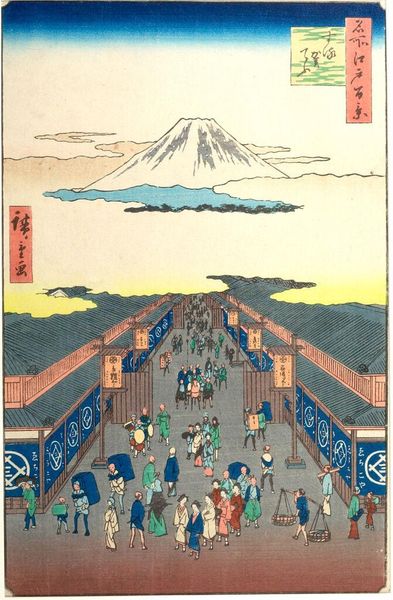 Utagawa Hiroshige created “Suruga Chō” as a woodblock print, a popular medium in Japan during the Edo period. The era, lasting from 1603 to 1867, saw significant economic growth and urbanization, especially within the merchant class. Here, the bustling street of Suruga is lined with the Mitsui merchant house, a symbol of rising commercial power, while Mount Fuji looms in the background, representing stability and the enduring cultural identity of Japan. In terms of social commentary, the print subtly acknowledges the shifting dynamics of wealth and influence during the Edo period. Although the strict hierarchy of samurai, farmers, artisans, and merchants remained, prints like these captured a society in flux. Hiroshige’s atmospheric perspective invites viewers to reflect on their place within a rapidly changing urban landscape. The artwork also offers a personal connection to the past, allowing us to consider how enduring symbols intersect with everyday life.