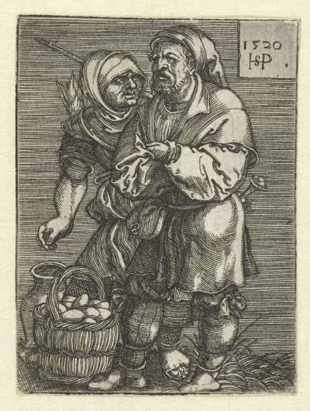 Adriaen van Ostade created this etching, “Boer en boerin als liefdespaar in een deuropening”, sometime in the 17th century in the Netherlands. It depicts a farmer and his wife as a loving couple in a doorway. The image offers us a window into the cultural values and social dynamics of the Dutch Golden Age. The representation of peasants in art was a popular genre in the Netherlands at this time. It reflected a growing interest in everyday life and the common person. But it also served to reinforce social hierarchies. By depicting peasants in a particular way, artists could comment on the social structures of their time, often reinforcing stereotypes about rural life. Van Ostade often portrays his subjects with empathy. The intimacy of this image challenges any reading that would caricature the couple. To better understand the meaning of this artwork, it is important to consider its historical context. Research into the social and economic conditions of the 17th-century Dutch peasantry can provide valuable insights into the artist's intentions and the artwork's reception.