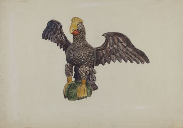 This "Eagle Figurehead" was made by F.W. Powell, and it really grabs you with the subtle palette that’s used to construct the eagle’s form. Powell’s choice of colour helps create a sense of depth and texture, turning a simple drawing into something that almost feels like you could reach out and touch it. Look closer, and you'll see how Powell works with watercolour, layering thin washes to build up the color and shading. The texture of the paper becomes part of the artwork, giving the eagle's feathers a soft, almost downy quality. Notice how the artist uses precise strokes to define each feather, creating a sense of movement and vitality, as if the eagle could take flight at any moment. The beak is slightly open, and you can almost hear the eagle’s call, a symbol of freedom and strength. This piece makes me think of some of the graphic art of someone like Alex Katz, who has a knack for capturing the essence of a subject with just a few well-placed lines and colours. In the end, Powell's work reminds us that art is not just about representation, it’s about feeling.