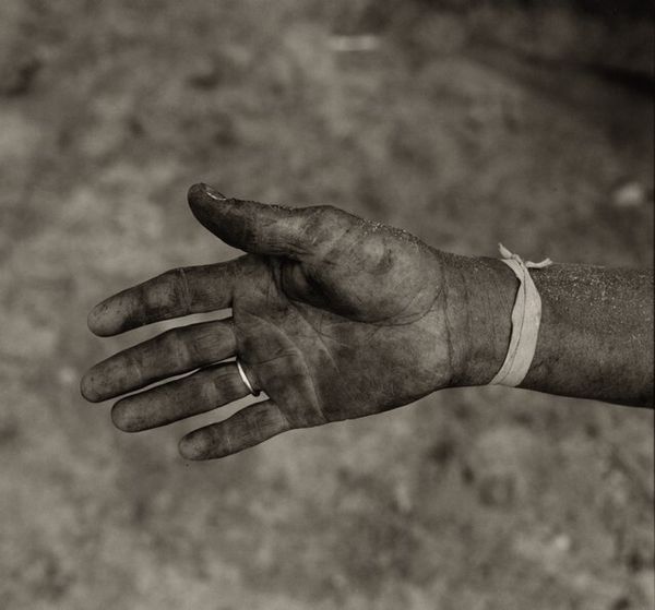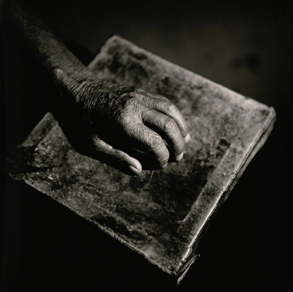 Fazal Sheikh made this photograph, part of a series called, “The ‘Hope’ Grasshopper. Dona Antônia’s Wish-Ribbon Bracelet. Five Centuries Work the Land at Black River.” The photo is black and white, which strips away the immediate distraction of color. What remains is the texture, oh, the texture! Look at the worn lines of the hand, each groove telling a story of labor and life. The grasshopper rests delicately on the palm, a fragile symbol of hope against a backdrop of hard work. The contrast is everything here. The smooth skin of the palm versus the insect’s brittle exoskeleton. The stillness of the hand, and the potential energy of the grasshopper, ready to leap away. It reminds me of Irving Penn’s stark portraits, how they isolate their subjects to reveal something essential about them. Ultimately, it’s not just about what is seen, but what is felt, the quiet strength and resilience of both hand and grasshopper.