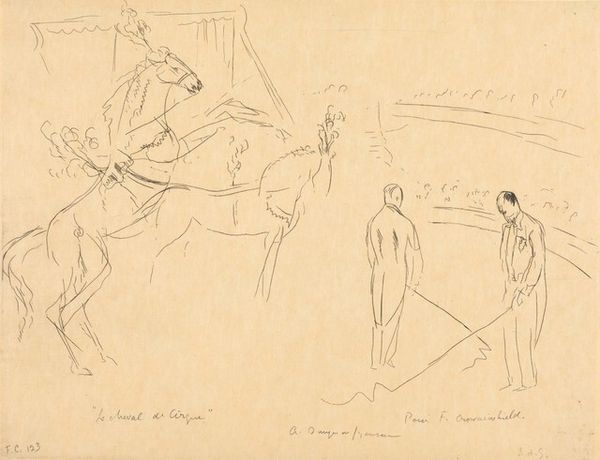 Attributed to Big Cloud, this ledger drawing captures a vivid scene of counting coup, a tradition among Plains Indians. The dominant symbol here is the horse, a signifier of wealth, status, and power. This motif resonates deeply, echoing in ancient equestrian statues and even the winged horses of mythology. Here, though, the horse is not merely a beast of burden, but a partner in the act of bravery. The act of "counting coup"—touching an enemy without causing serious harm—is depicted with the lance, a symbolic extension of the warrior's will. Consider the evolution of the 'lance' throughout history. From the spears of antiquity, employed by Roman legionaries, to the jousting knights of medieval Europe, the lance's symbolic resonance has shifted, yet always evokes power and valor. We see, in this drawing, the psychological weight of cultural memory, the subconscious echoes of bravery and dominance passed down through generations, engaging the viewer on a primal level. The motifs of horse and lance create a non-linear, cyclical progression, resurfacing across continents and centuries, their meanings evolving, yet their power undiminished.