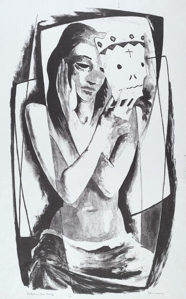 Alfred Freddy Krupa made this ink drawing, M. or how I died during my lifetime..., with what looks like a brush on paper, and what grabs me first is its raw energy. It's like he’s not just depicting death, but feeling it, wrestling with it in real time. The ink, it's not delicate, it’s put down with a kind of aggressive grace. See how the lines vary from thick, almost pooling darkness to these fragile, broken strokes. The skull has this halo thing going on, right? But it’s made of these chaotic swirls. Then the wing just shoots out with a real sense of movement. It reminds me a bit of some of Goya’s darker works, where he’s staring unflinchingly at the horrors of the world. But Krupa brings a distinctly contemporary feel, a kind of punk rock sensibility to these themes. It's a reminder that art isn't about answers, but about the questions we keep asking ourselves.