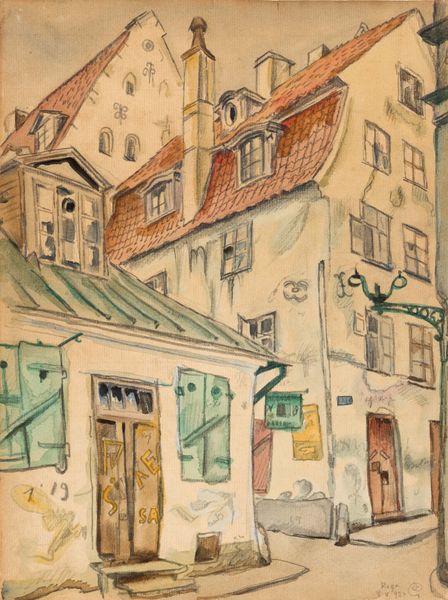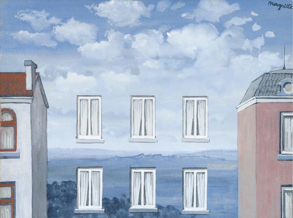 Editor: Here we have Léon Spilliaert's "House in the Peter Benoitstraat, Ostend," painted in 1929 with oil paint. I find it somewhat unsettling; the façade seems strangely flat and devoid of life, despite the almost hyper-realistic rendering. What do you see in this piece? Curator: I see a deliberate flattening of reality, not merely an artistic quirk. Note the repeating geometric forms - the rectangles and circles echoed in the architecture and window details. These shapes resonate with a kind of coded language common to interwar period art, a visual shorthand for the ordered, if increasingly unstable, society. Editor: Coded language? Curator: Yes. The building itself becomes a symbol. It's solid, imposing. However, the details like the curtains and even the roses hint at something else. Are they welcoming or masking an absence? Think about the psychological landscape of Europe in 1929. The echoes of World War I were still fresh, and anxieties about the future were brewing. Spilliaert’s choice of subject becomes a study of the façade versus what lies beneath. Do you feel a tension? Editor: I do, now that you point it out. It feels like there’s something hidden or repressed behind the formal presentation. The lamp, especially. Curator: Exactly! The lamp could represent the lingering weight of the past or a promise of illumination yet to come. This duality—the visible and invisible—becomes central to Spilliaert's imagery, I believe. Editor: That makes so much more sense now. It's not just a building; it's a visual representation of a complex state of mind, of cultural memory. Thanks. Curator: And a reminder that even in the most seemingly realistic representation, symbols can hold immense power.